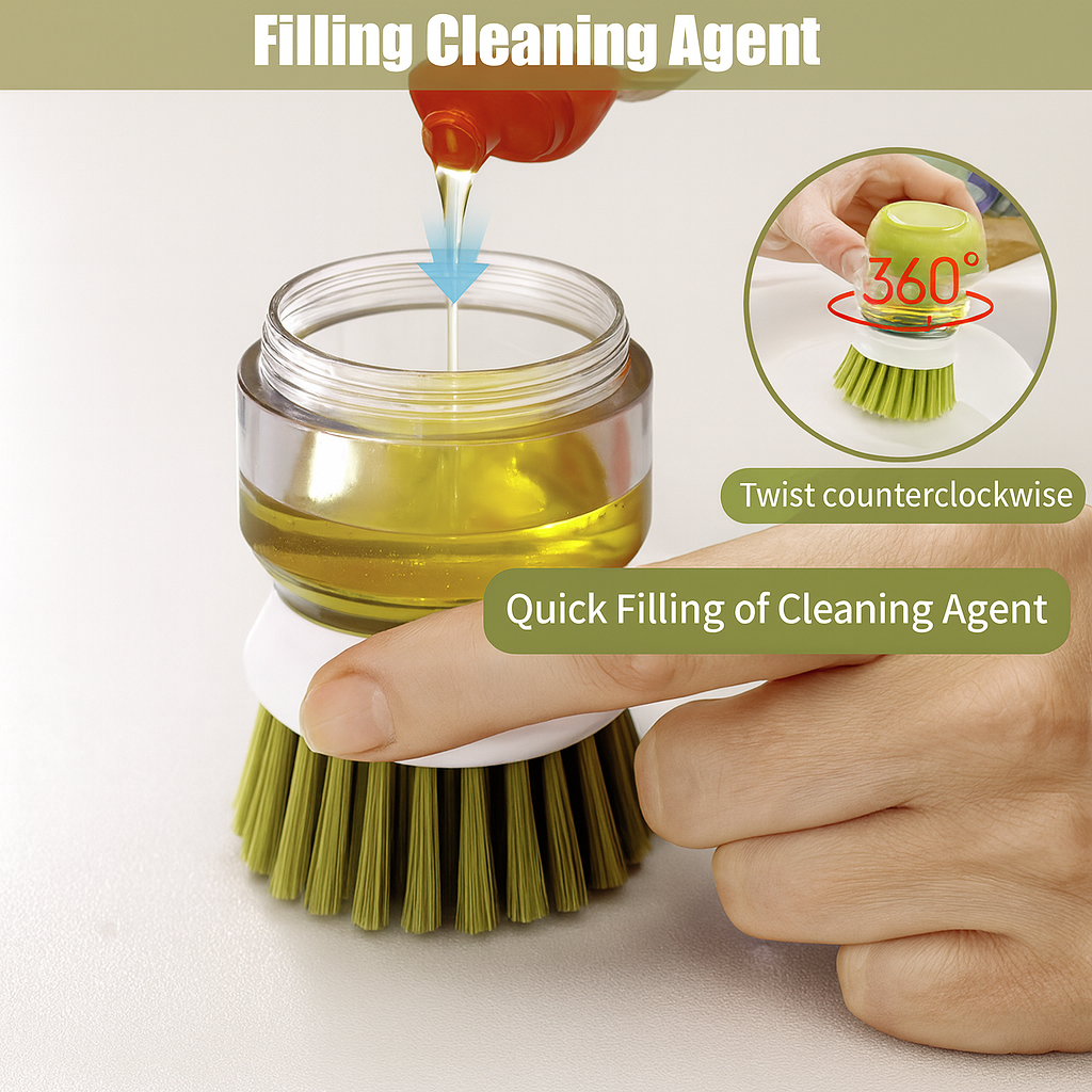 2pcs Press-Type Kitchen Scrub Brush set – quick, powerful grease remover for pots, pans, and dishes.
